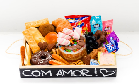 A bandeja especial de guloseimas é perfeita para quem deseja presentear com doçura e alegria. Com uma combinação deliciosa de pães, frutas, bebidas e muitas guloseimas irresistíveis, ela transforma qualquer momento em uma surpresa cheia de sabor e carinho, ideal para celebrar e adoçar o dia de alguém especial.
